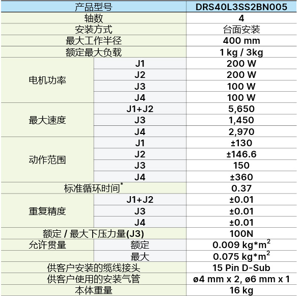 * 负载 1 kg 时,上下移动 25 mm,水平移动 300 mm,往返所需的时间。测试环境温度 25ºC, 环境相对湿度 45% ~ 65% RH