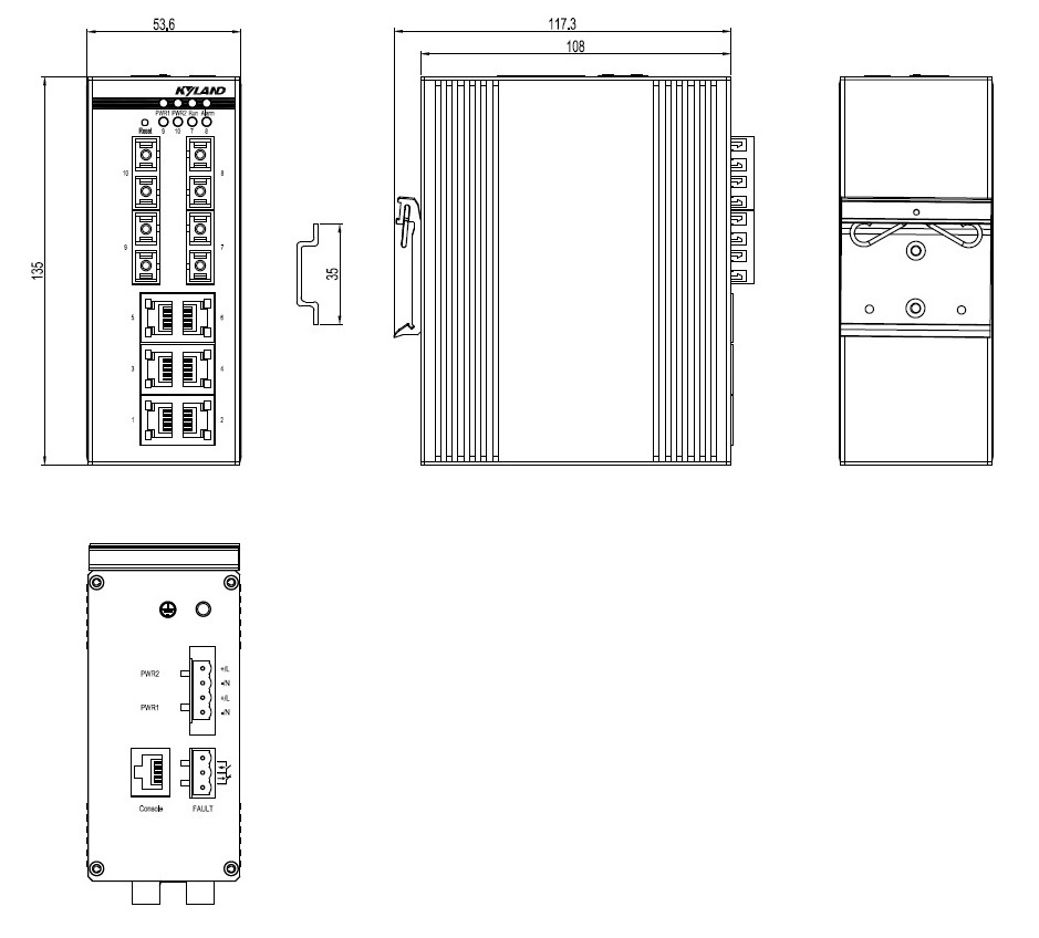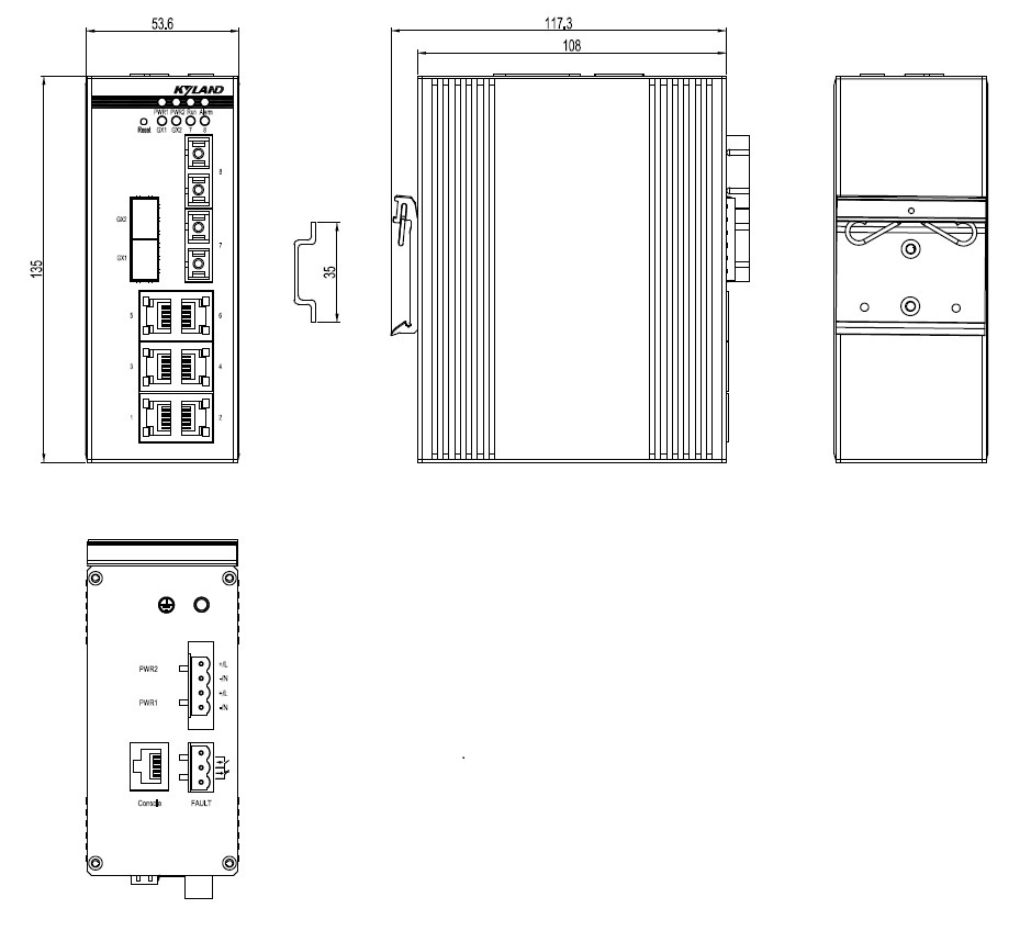 | 机械结构 | 外壳 金属材质 散热方式 自然冷却,无风扇 防护等级 IP40 尺寸 53.6mm×135mm×108mm (W×H×D) 重量 0.6Kg 安装方式 DIN卡轨式或壁挂式 | |